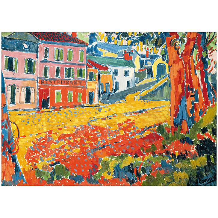 It was in 1900, after meeting Derain, that Maurice de Vlaminck decided to become a full-time painter. Landscapes, particularly the Seine around Paris, were one of his favourite subjects. Here it is the village of Bougival and more particularly the restaurant "La Machine" which he has chosen as a motif.