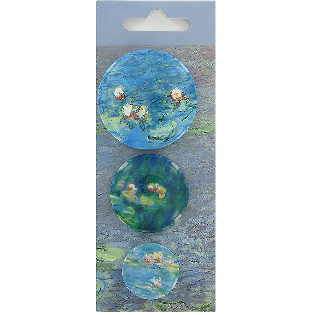 These 3 pin's each represent a detail of Claude Monet's (1840-1926) work, "Water Lilies, Morning", Water lilies series, around 1914-1926, kept at the Musée de l'Orangerie.