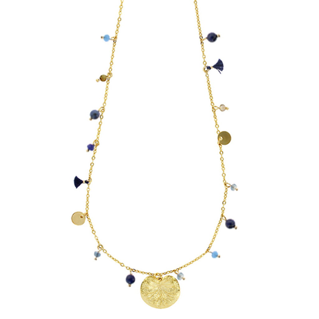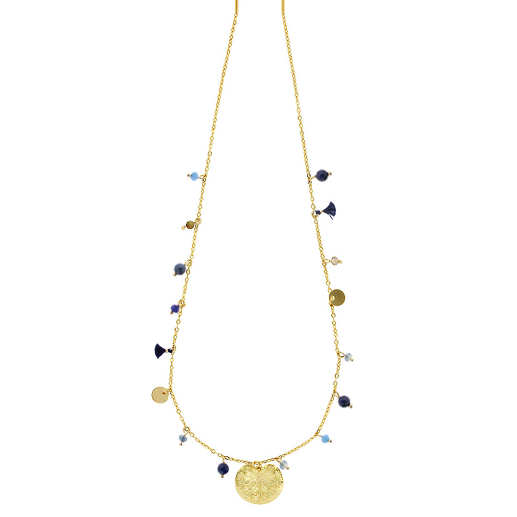 This necklace with turquoise blue pendants and a golden pewter water lily pendant is loosely based on Claude Monet's famous series of paintings: Les Nymphéas, created between 1890 and 1926.