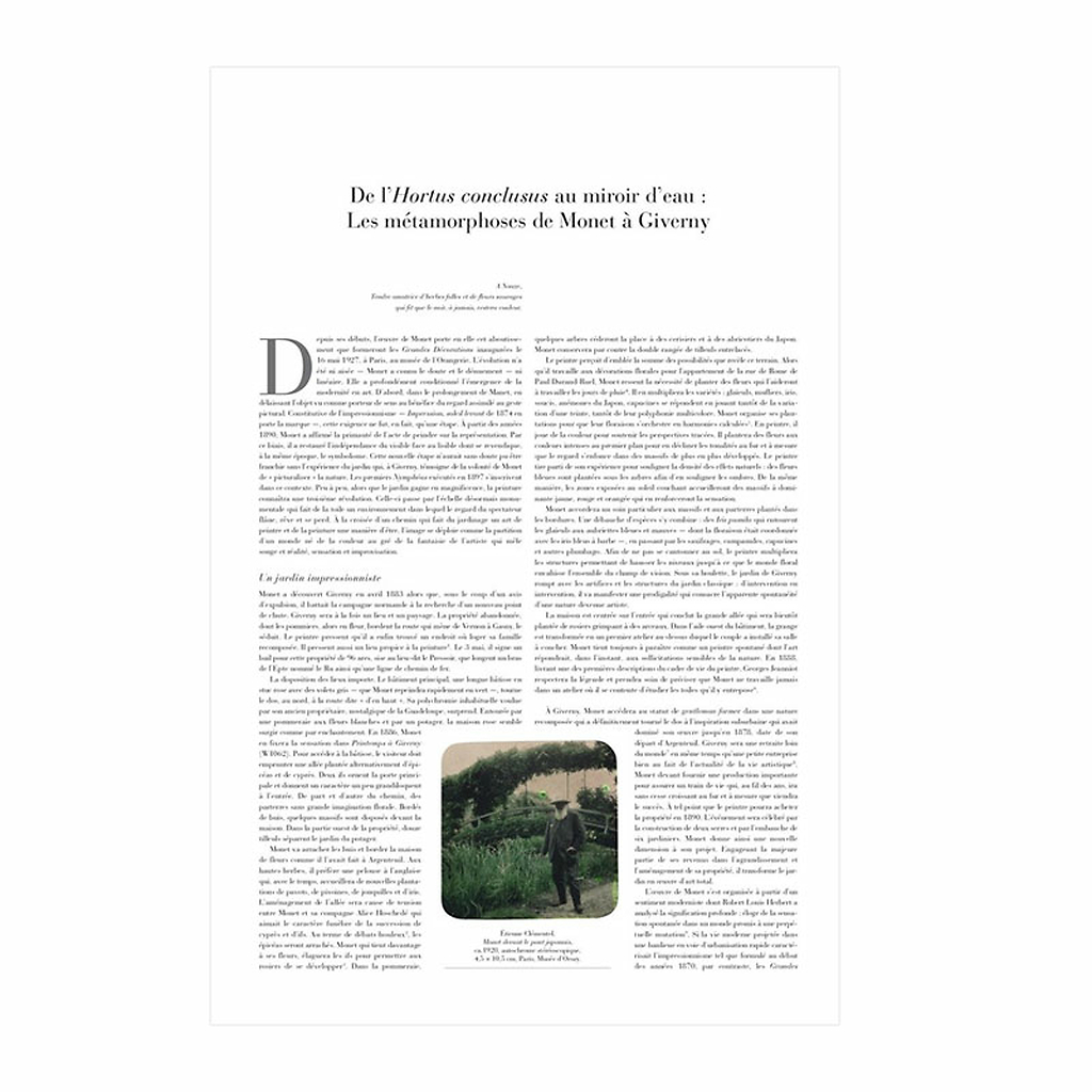 From 1899 until his death in 1926, Claude Monet never stopped tracking down the play of transparency and reverberation in the "waterscapes" offered by his Japanese garden in Giverny. The central theme is the water lilies, studied from the riverbank or from the Japanese bridge, but the real subject remains the fusion of sky and water, the transparency of the backgrounds, the reverberation of the surfaces, the radiance of the flowers. The author traces the history of the garden and of this immense pictorial production.