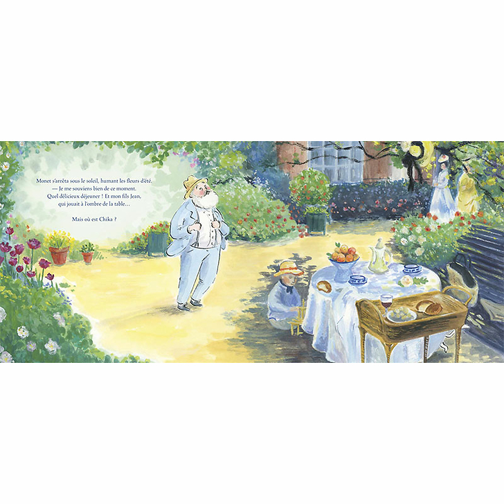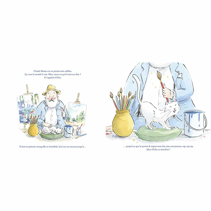 At the end of the book, a small documentary focus explains the true history of this little white ceramic cat. The most curious and lucky will even be able to admire it in the painter's house in Giverny!