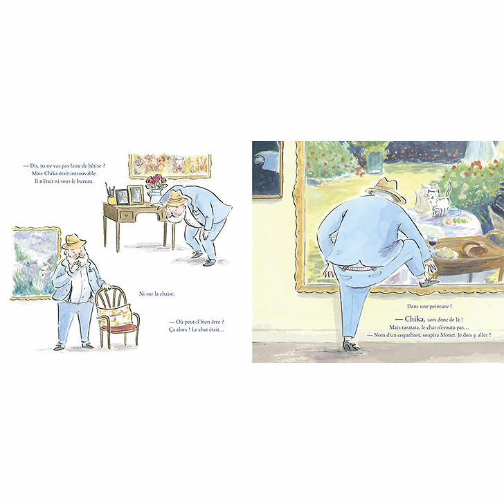 Do you know Chika, Claude Monet's cat? This rascal sneaks in everywhere! Even in his paintings, where he causes trouble. The painter sets off in pursuit. Will he catch him? Catch it or not?