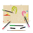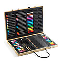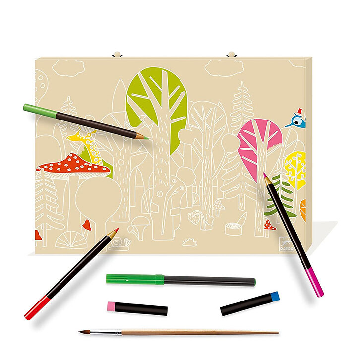This rich case contains quality Fine Arts materials and offers budding artists the opportunity to lern different techniques : pastels, drawings, gouaches... everything is there. The exterior of the box is decorated with a coloring frieze to personalize it.
