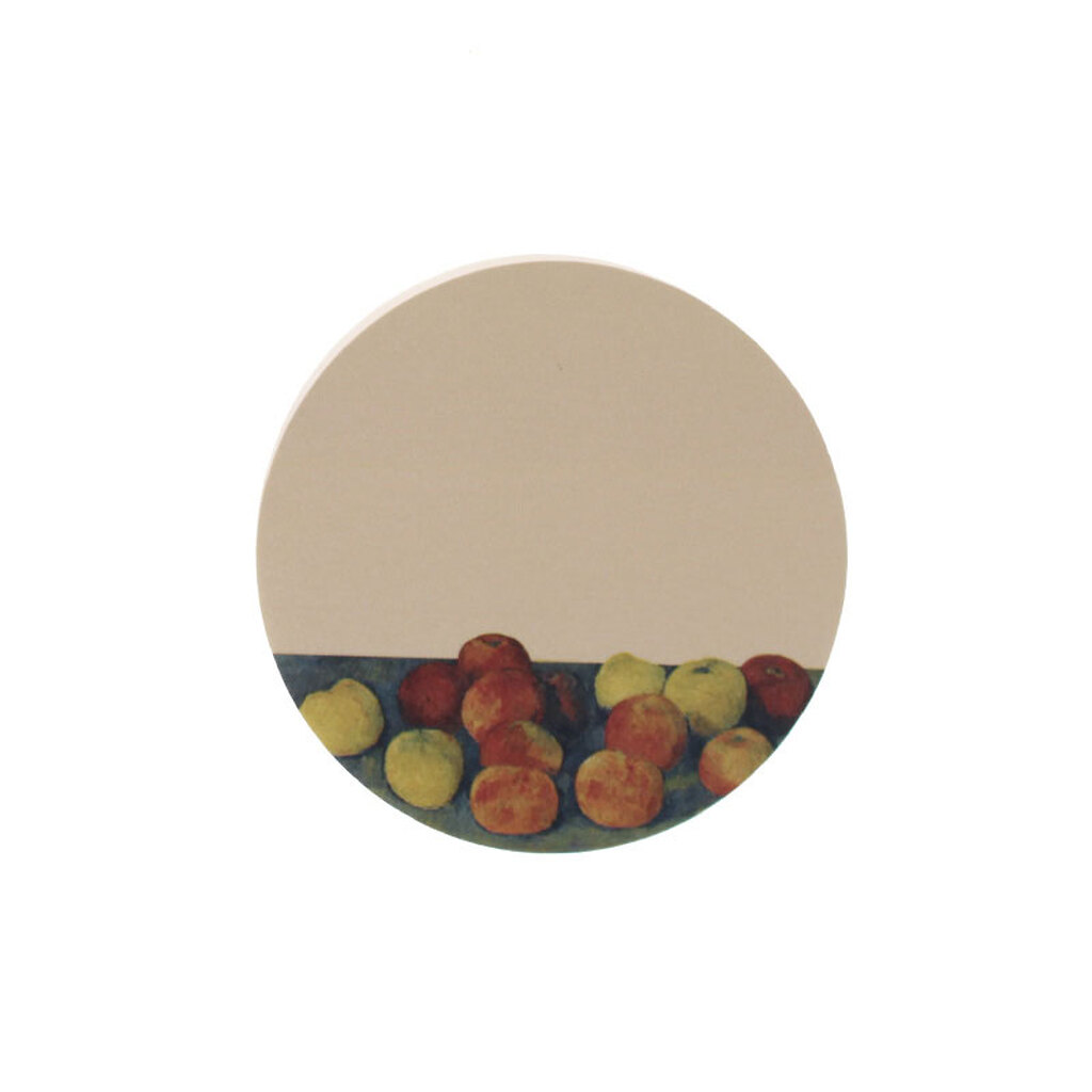 This round-shaped notebook with repositionable notes is illustrated with a detail of the work by Paul Cézanne, Apples et biscuits, 1880, kept at the Musée de l'Orangerie.