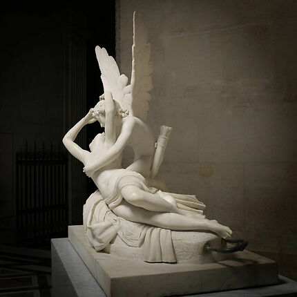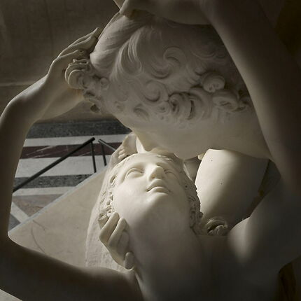 Drawn from the novel the Metamorphoses (2nd century BC) by the Latin writer Apuleius, the tale of Cupid and Psyche greatly inspired the Neoclassical sculptors of the late 18th century. Among them was Antonio Canova, a Venetian sculptor and painter who created his own version of this doomed romance at the request of the English Colonel John Campbell. Presented in the Musée du Louvre, this marble group focuses on the moment when the god of love is about to kiss the princess Psyche, who is in a deep sleep.