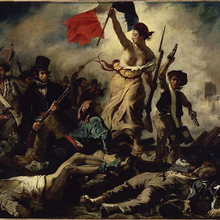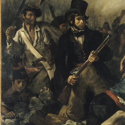 Liberty Leading the People was not painted in reference to the 1789 revolution but to the "July Revolution", the three days in 1830 (27, 28 and 29 July) during which the people rebelled against King Charles X. With its pyramidal composition, at the top of which sits a fierce daughter of the people dressed in a Phrygian cap, carrying a French rifle and flag, and dressed in a yellow cloth reminiscent of robes of antiquity, the painting is in line with other works produced at the same time. Completed in December 1830, Liberty Leading the People was presented to the public at the Salon de peinture et de sculpture of 1831, and only entered the Louvre in 1874. It was one of the museum's most viewed paintings for a long time.