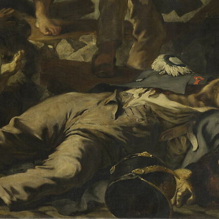 Eugène Delacroix appears in the work "The Raft of the Medusa" by Théodore Géricault: he agreed to pose as one of the shipwrecked, he appears as a cadaver with uncovered shoulders, lying face down on the ground.