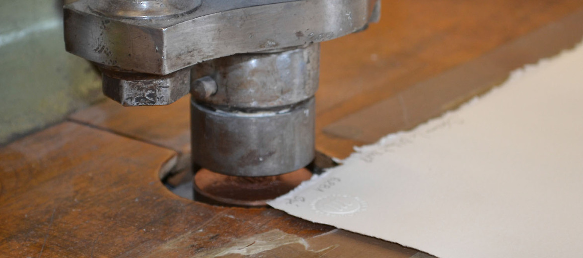 Intervient alors la dernière étape du processus de fabrication : la pose du timbre sec de la Chalcographie du Louvre. Cette marque en relief, « gaufrée » au bord de l'estampe, certifie la qualité et l'authenticité du tirage.