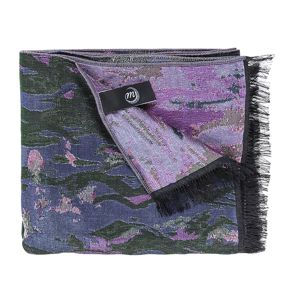 Cette étole est inspirée d'une partie de l'ensemble présenté à l'Orangerie, composition d'un paysage d'eau jalonné de nymphéas, de branches de saules, de reflets d'arbres et de nuages, « illusion d'un tout sans fin, d'une onde sans horizon et sans rivage » selon les termes...