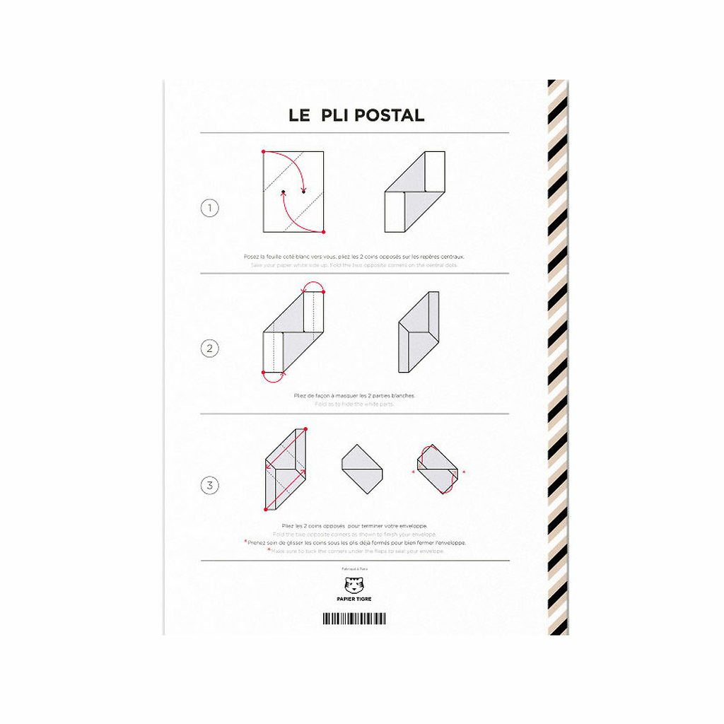 Le Pli Postal permet de marquer toute la singularité de l'écrit. Votre correspondance se pare ainsi d'un geste inédit : plier, timbrer et poster, une nouvelle façon de communiquer !
