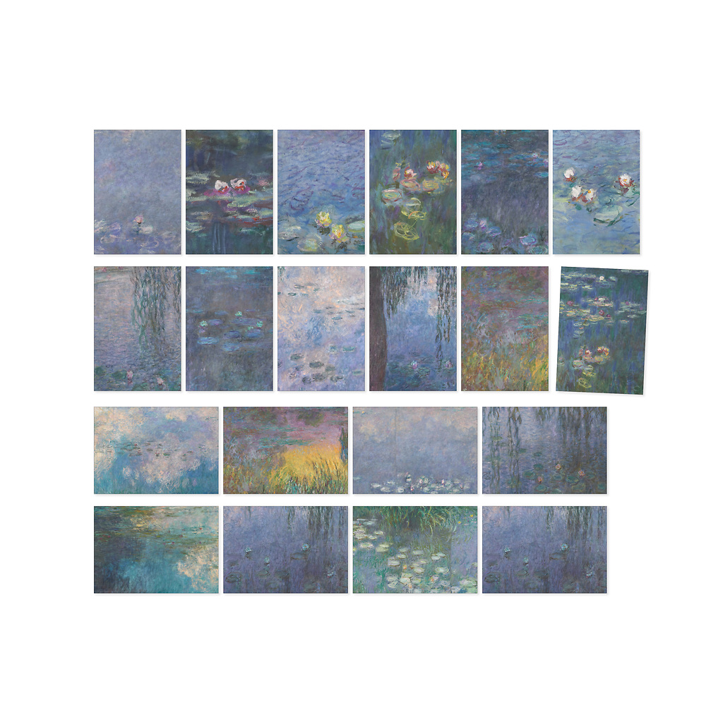 Ce bloc contient 20 cartes postales avec des reproductions de la série des Nymphéas de Claude Monet, entre 1914 et 1926.