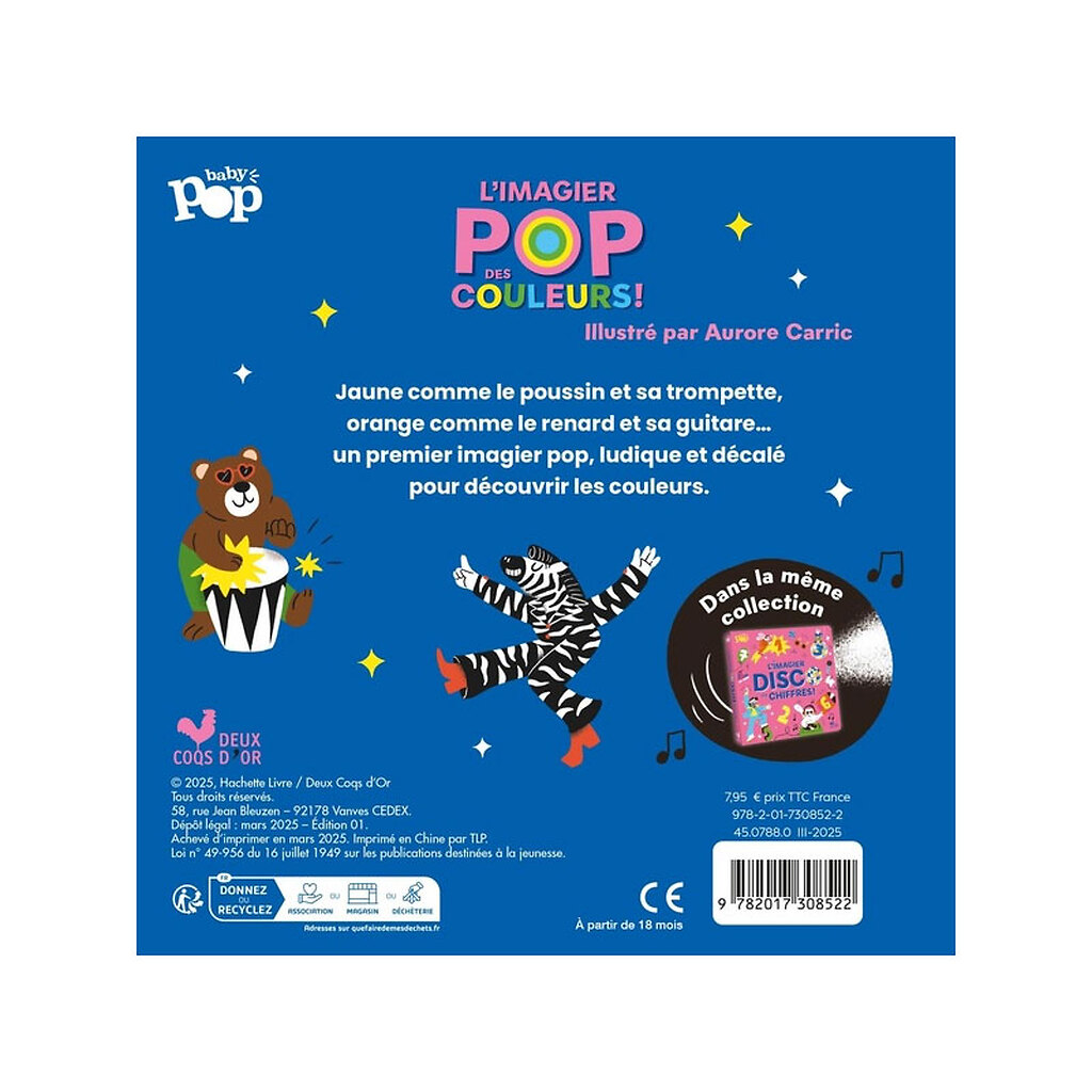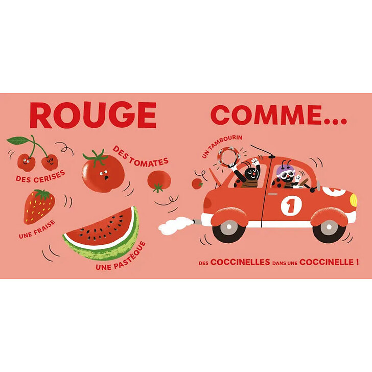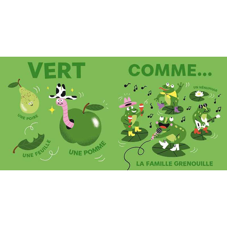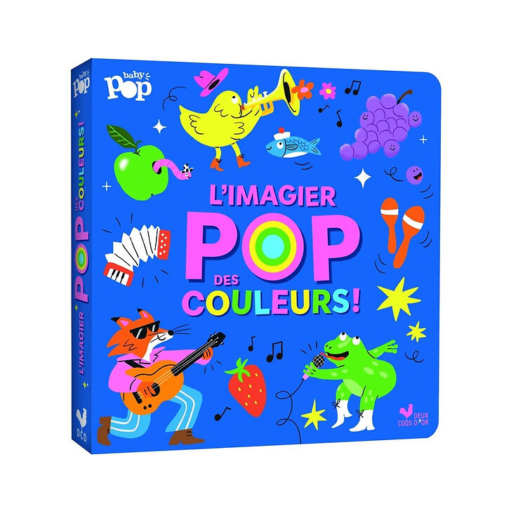 Jaune comme le poussin et sa trompette, orange comme le renard et sa guitare... un premier imagier pop, ludique et décalé pour découvrir les couleurs.