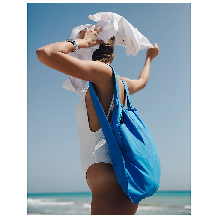 À l'intérieur du sac, il y a une poche attachée où vous pouvez garder votre portefeuille ou vos clés. Lorsque le sac n'est pas utilisé, il se plie dans cette poche et devient un sachet de taille manuelle.