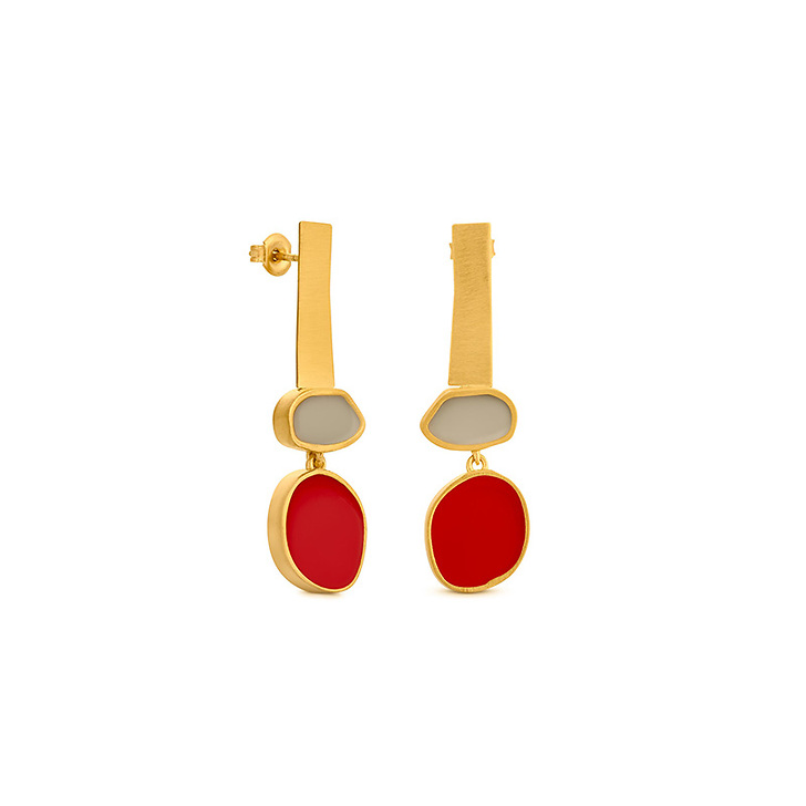 Boucles d'oreilles dorées Collage rouge - Joidart