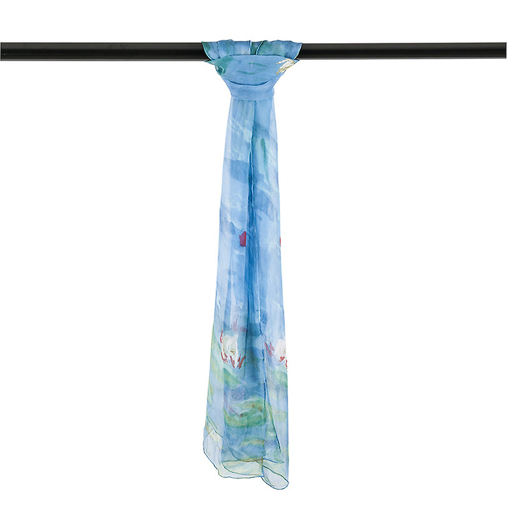 Cette étole de soie est inspirée par les fascinants nymphéas de Claude Monet.