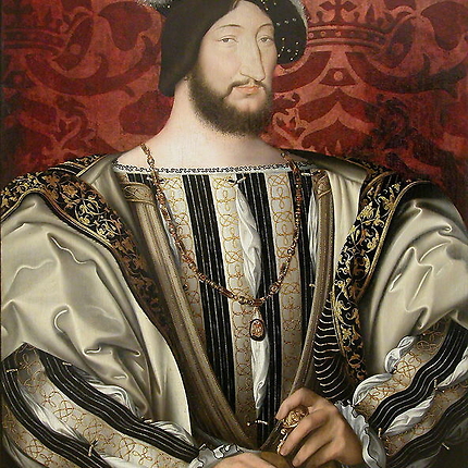 C'est sans aucun doute l'image la plus connue de François Ier. Signé Jean Clouet, portraitiste français et peintre du souverain dès 1516, ce tableau est, comme bon nombre de ses œuvres, peint sur un panneau de petit format. Son modèle y est présenté en buste, presque de face, le visage de trois quarts, et sans attributs royaux. Une innovation cependant : François Ier pose son regard sur le spectateur. Là où de nombreux portraitistes aiment à représenter les puissants vêtus d'armure de guerre, Jean Clouet choisit de peindre le roi de France dans une tenue d'une exceptionnelle magnificence (veste longue en satin de soie blanche et velours noir brodé au fil d'or, pourpoint de velours de soie rayée...), lui permettant de démontrer l'étendue de son talent dans le rendu des matières.