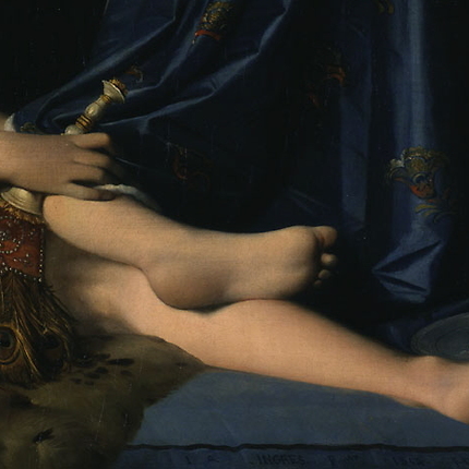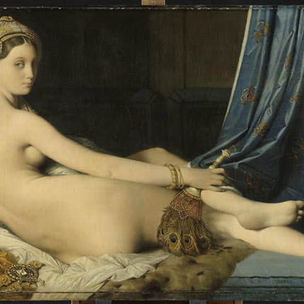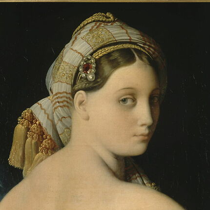 Elle a beau lui tourner le dos, c'est bien vers le spectateur que La Grande Odalisque de Jean-Auguste-Dominique Ingres darde son regard, tout à la fois langoureux et un brin moqueur. Lorsqu'il réalise en 1814 ce tableau sur commande de Caroline Murat, sœur de Napoléon Ier, le peintre français a en tête ces odalisques, du terme turc désignant une femme de chambre au service du harem du sultan. Faisant écho au courant de l'orientalisme qui inspire à l'époque de nombreux peintres, Ingres la représente entièrement nue, tout juste accessoirisée de bijoux, d'un turban et d'un éventail en plumes de paon. Si ce portrait fascine et interroge, c'est aussi parce que la femme ainsi offerte présente un dos particulièrement long (on compte trois vertèbres supplémentaires) ainsi qu'une pose peu naturelle, notamment au niveau des jambes. Un choix assumé par le peintre, préférant peindre à sa manière que de suivre une réalité anatomique.