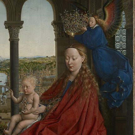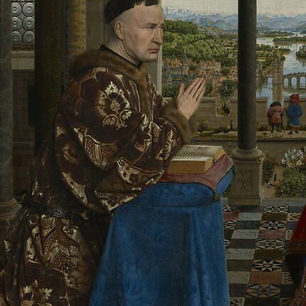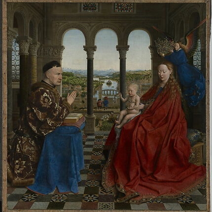 Entrée au musée du Louvre en 1800, l'œuvre du peintre primitif flamand Jan Van Eyck n'avait jamais été restaurée jusqu'à sa remise à neuf entre 2021 et 2024. L'occasion pour le grand public de (re)découvrir un tableau libéré des couches de vernis oxydé qui assombrissaient les couleurs éclatantes de cette composition religieuse. Réalisée pour Nicolas Rollin, alors chancelier du duc de Bourgogne, cet ex-voto exécuté vers 1435, a été peint à l'huile sur bois.