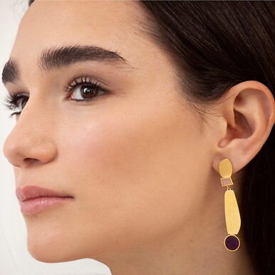 Boucles d'oreilles dorées Collage mauve - Joidart
