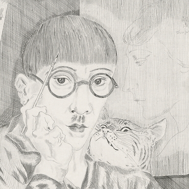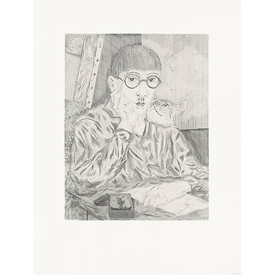 Estampe Autoportrait de l'artiste au chat - Foujita