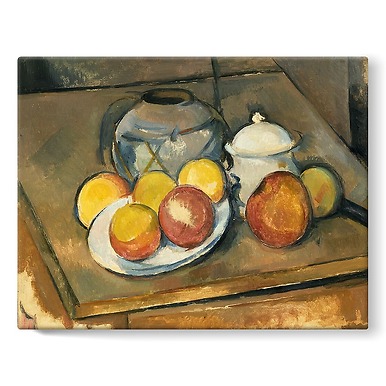 Vase paillé, sucrier et pommes (toiles sur châssis)