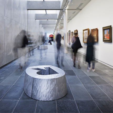 Depuis les années 2010, Agnès Thurnauer explore avec sensibilité la plasticité du langage, transformant les lettres de l'alphabet en véritables sculptures. Avec ses Matrices, elle crée un alphabet en volume : des formes creuses, lisibles, qui deviennent à la fois langage, sculpture et mobilier.